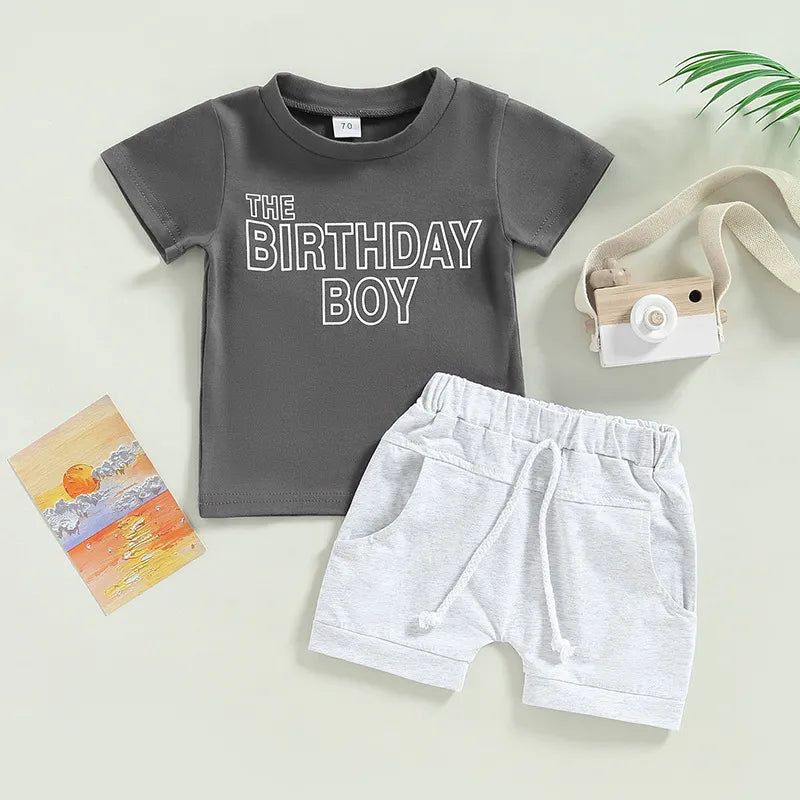 2pcs Baby Boy BIRTHDAY BOY Print Set
