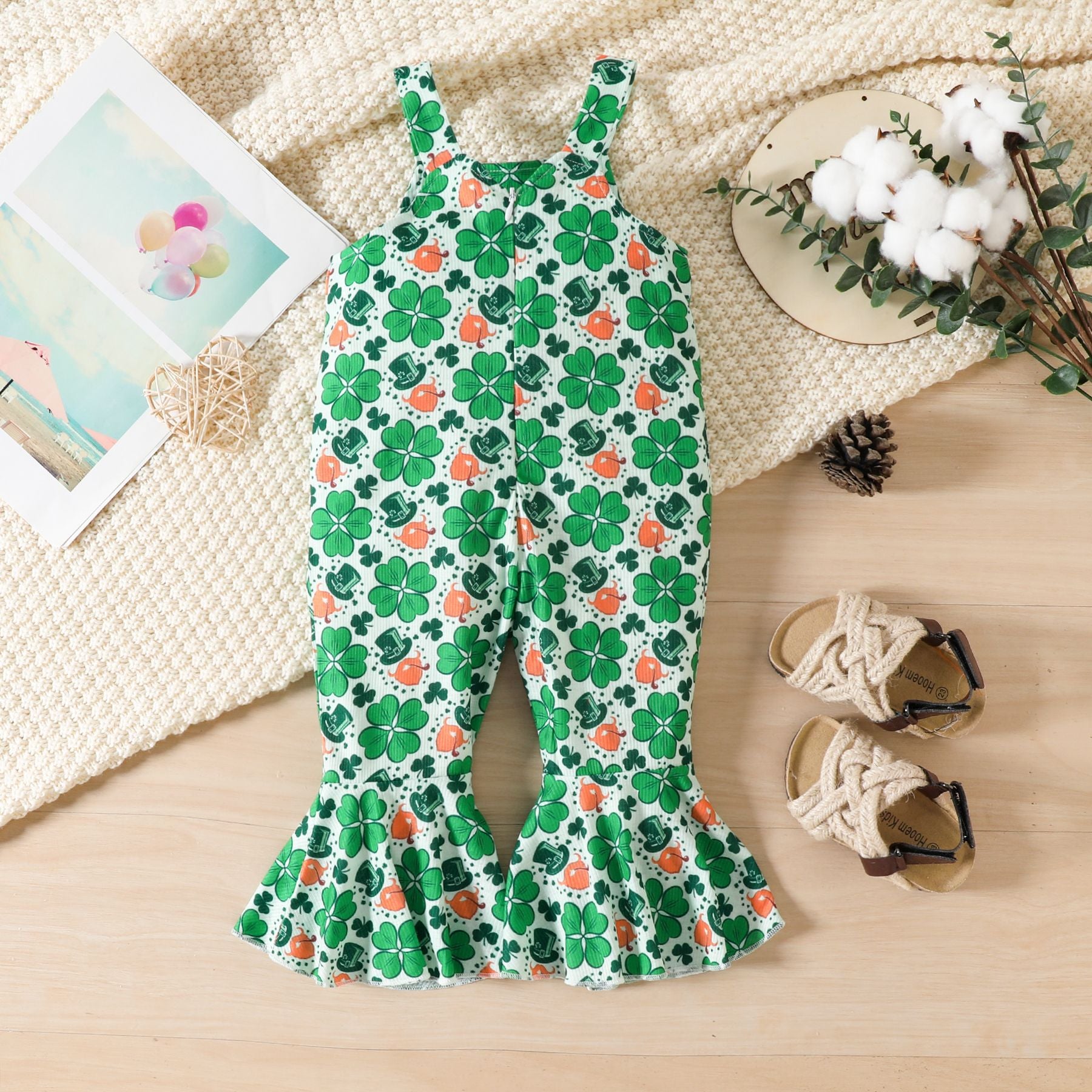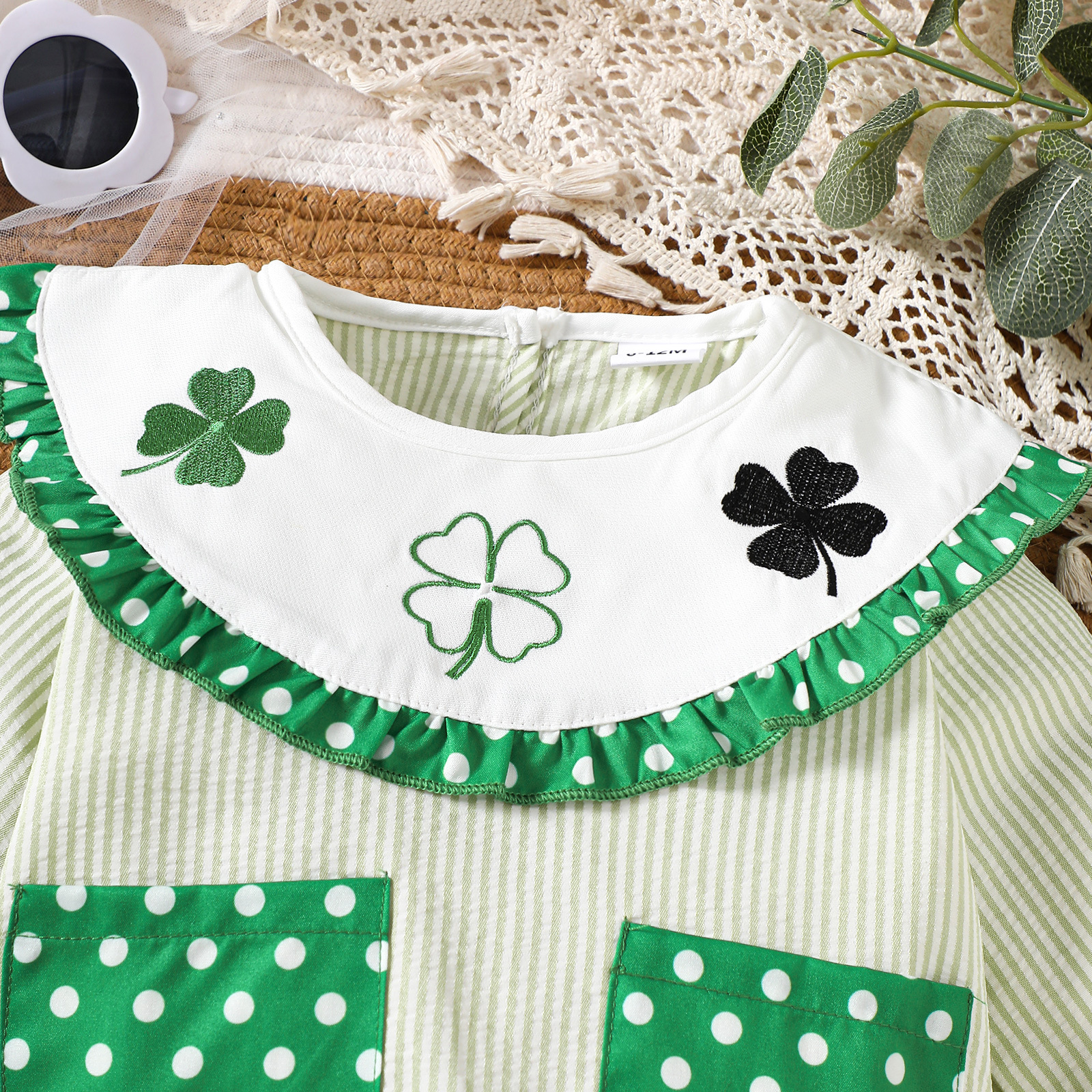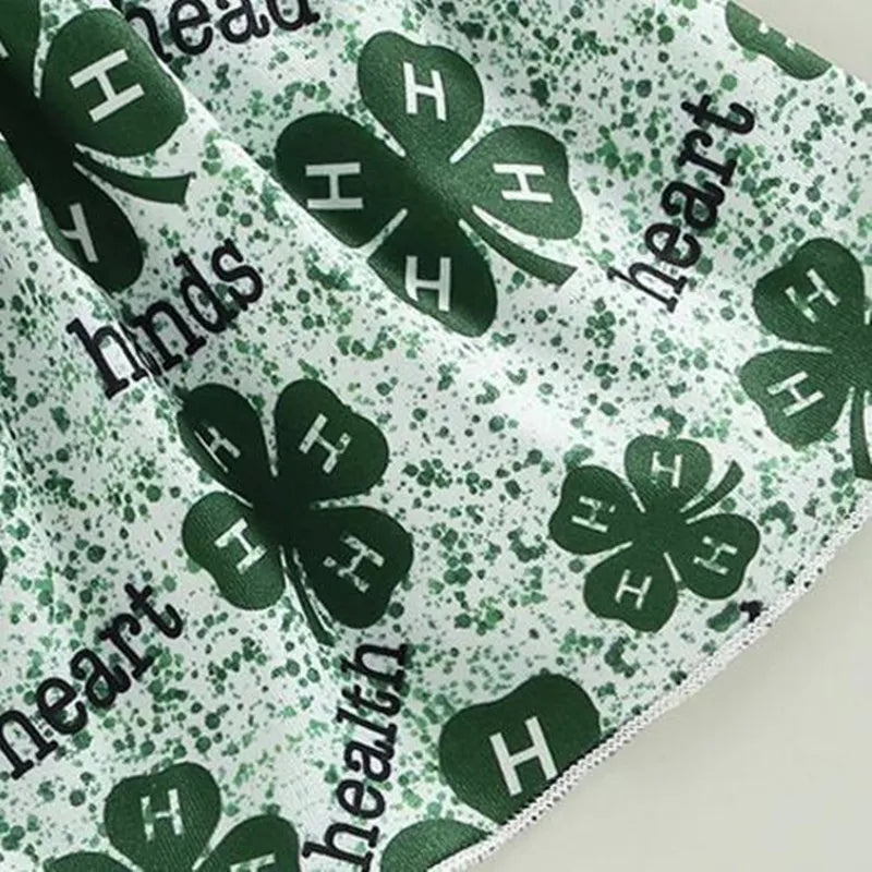 Cute Romper with Clover Embroidery and Print