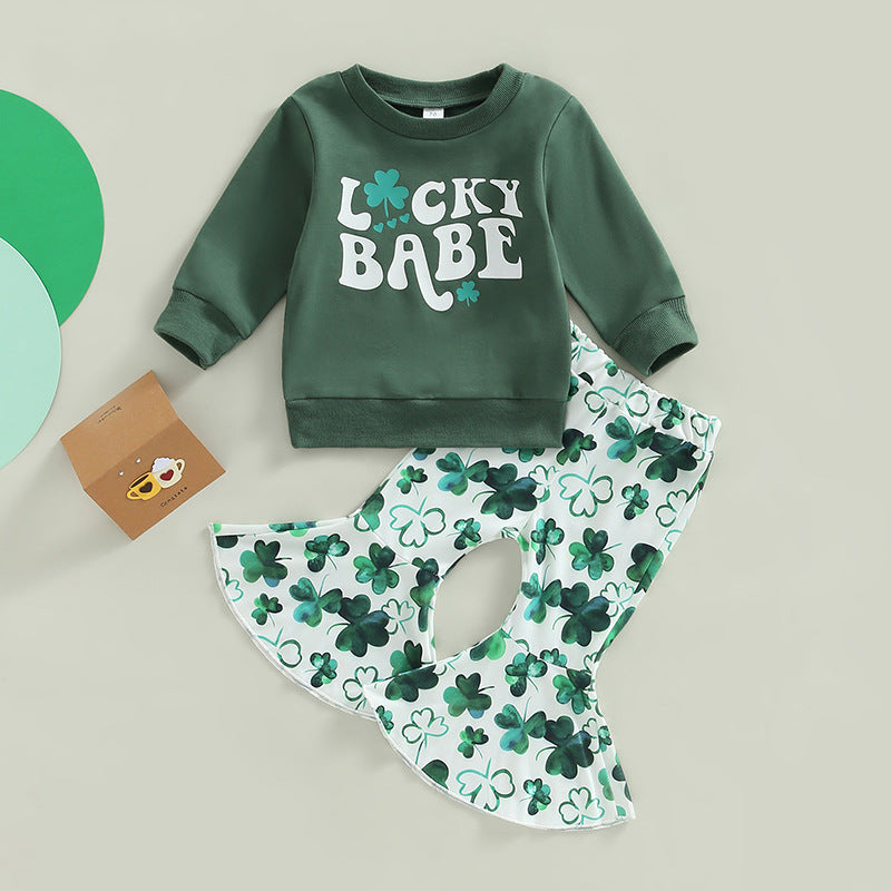 2 Pieces Baby four-leaf clover print Suit