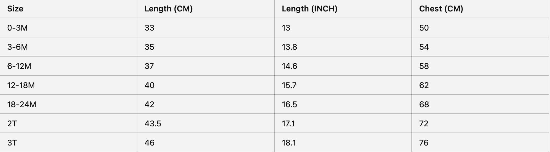 Babies grow at their own pace. It's recommended to choose the size that corresponds to your mini's height and weight rather than their age for a much more accurate fit. Please also take delivery time into consideration.