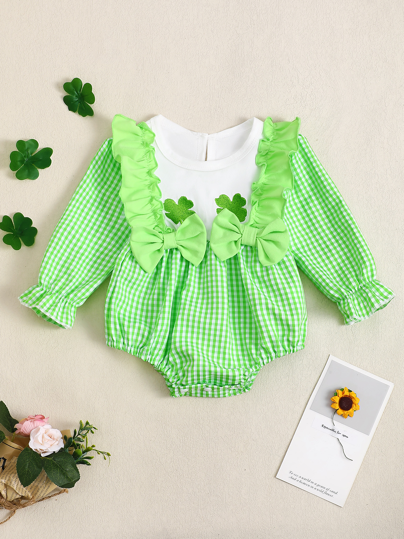 Baby Four leaf clover Embroidered Romper