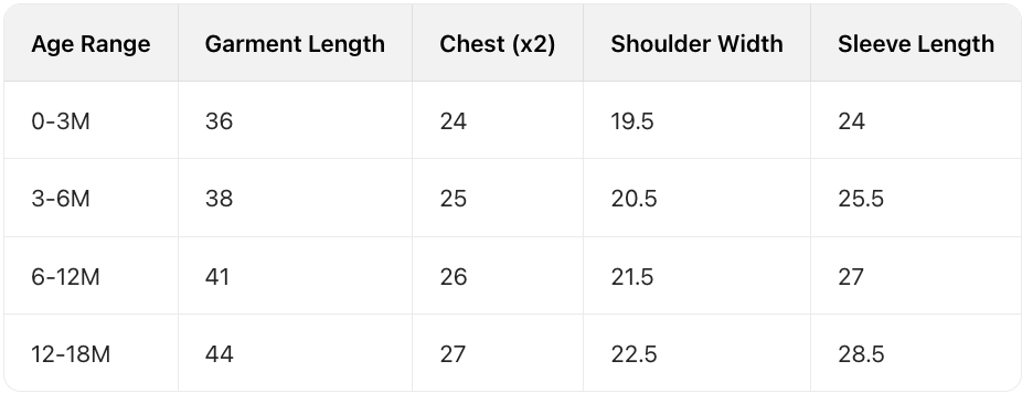 Babies grow at their own pace. It's recommended to choose the size that corresponds to your mini's height and weight rather than their age for a much more accurate fit. Please also take delivery time into consideration. Note: All measurements are manually taken and may have a 1-2 cm error. Please use the actual product as the standard. View less