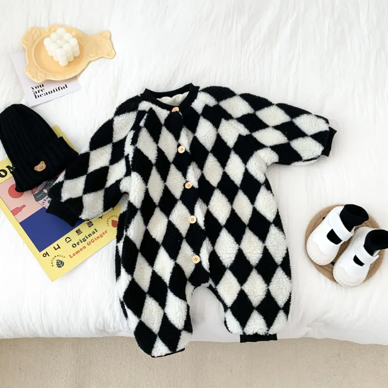 Baby Warm Plaid Set Romper